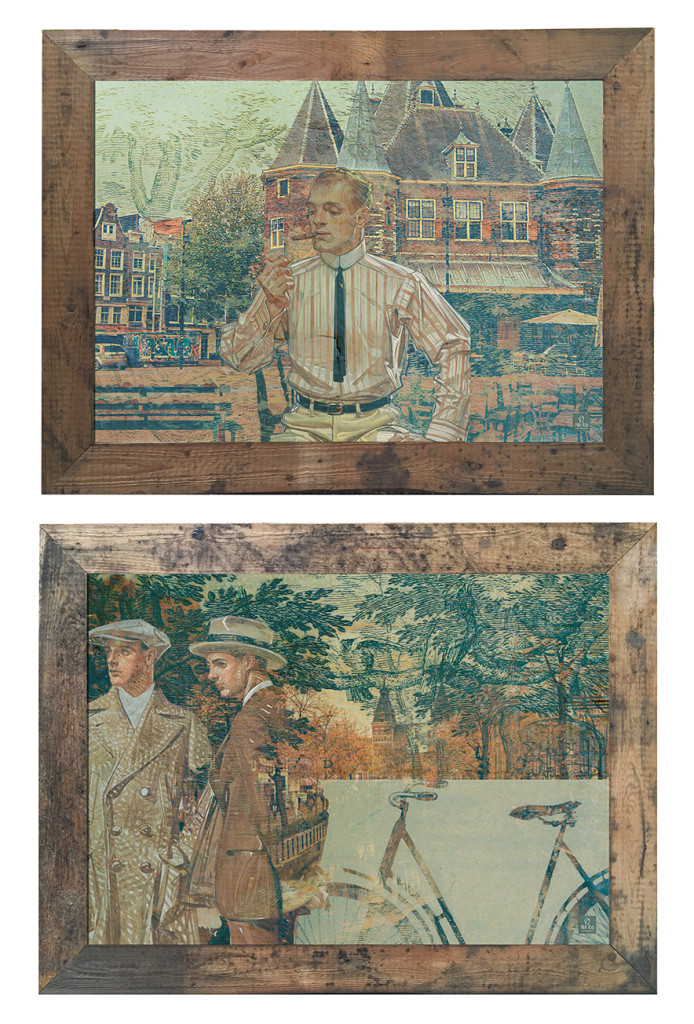 De ontwerpen zijn groot formaat en geprint op forex met daarom heen zelfgemaakte lijsten.