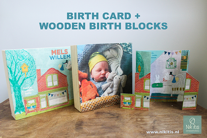 Dit leuke geboortekaartje is tevens op een blok hout geprint met een foto van Mels als blijvend aandenken.