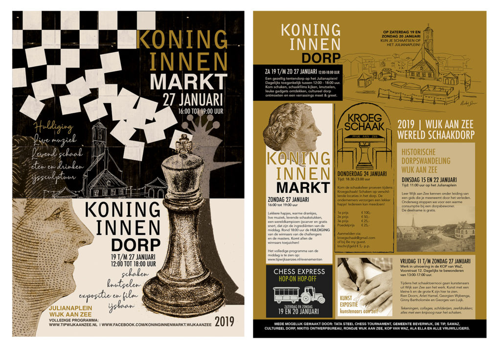 Een terugkerend evenement in Wijk aan Zee tijdens het Tata Steel Chess Tournament. Op het Julianaplein is een klein tenten dorp georganiseerd, met eten, drinken, muziek en natuurlijk schaken. Voor de evenement zijn er posters, flyers, straatnaambordjes, banners, dranghekdoeken ontworpen en is Facebook onderhouden.