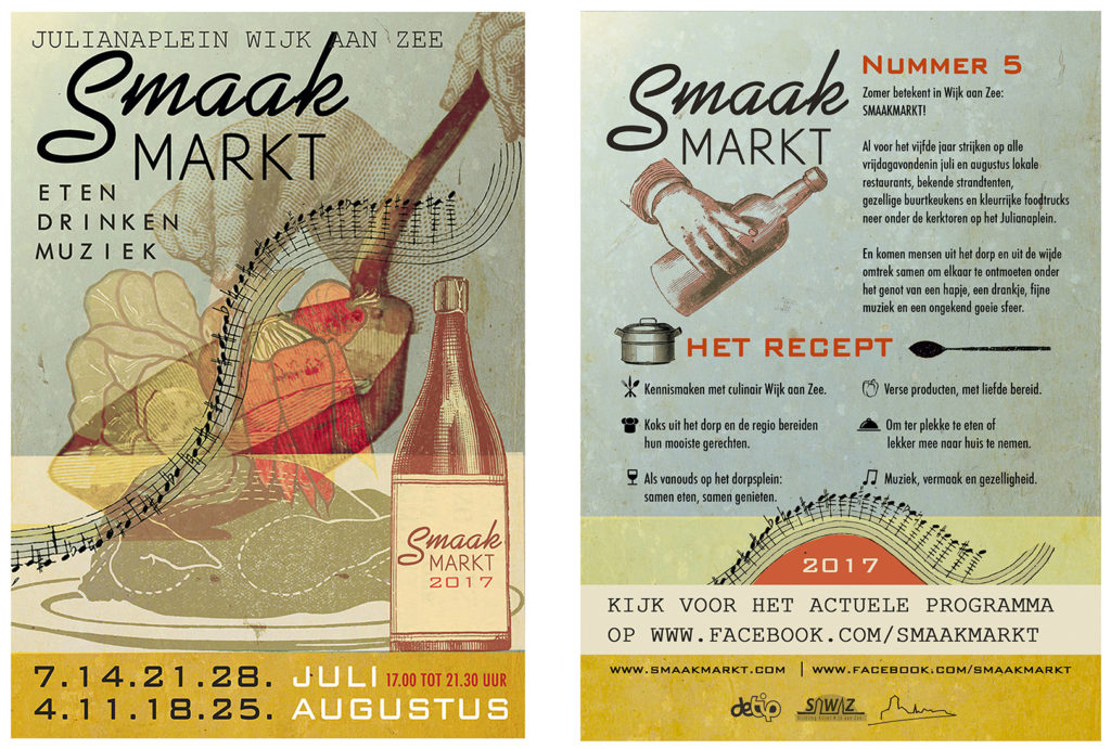 Jaarlijks terugkomend evenement in Wijk aan Zee. Nikitis verzorgt de vormgeving en uitvoering van de promotie materialen. O.a. de website; www.smaakmarkt.com, posters, flyers, advertenties, wijnkannen, magneten, spandoeken, receptenkaarten en onderhouden van facebook. www.facebook.com/Smaakmarkt.